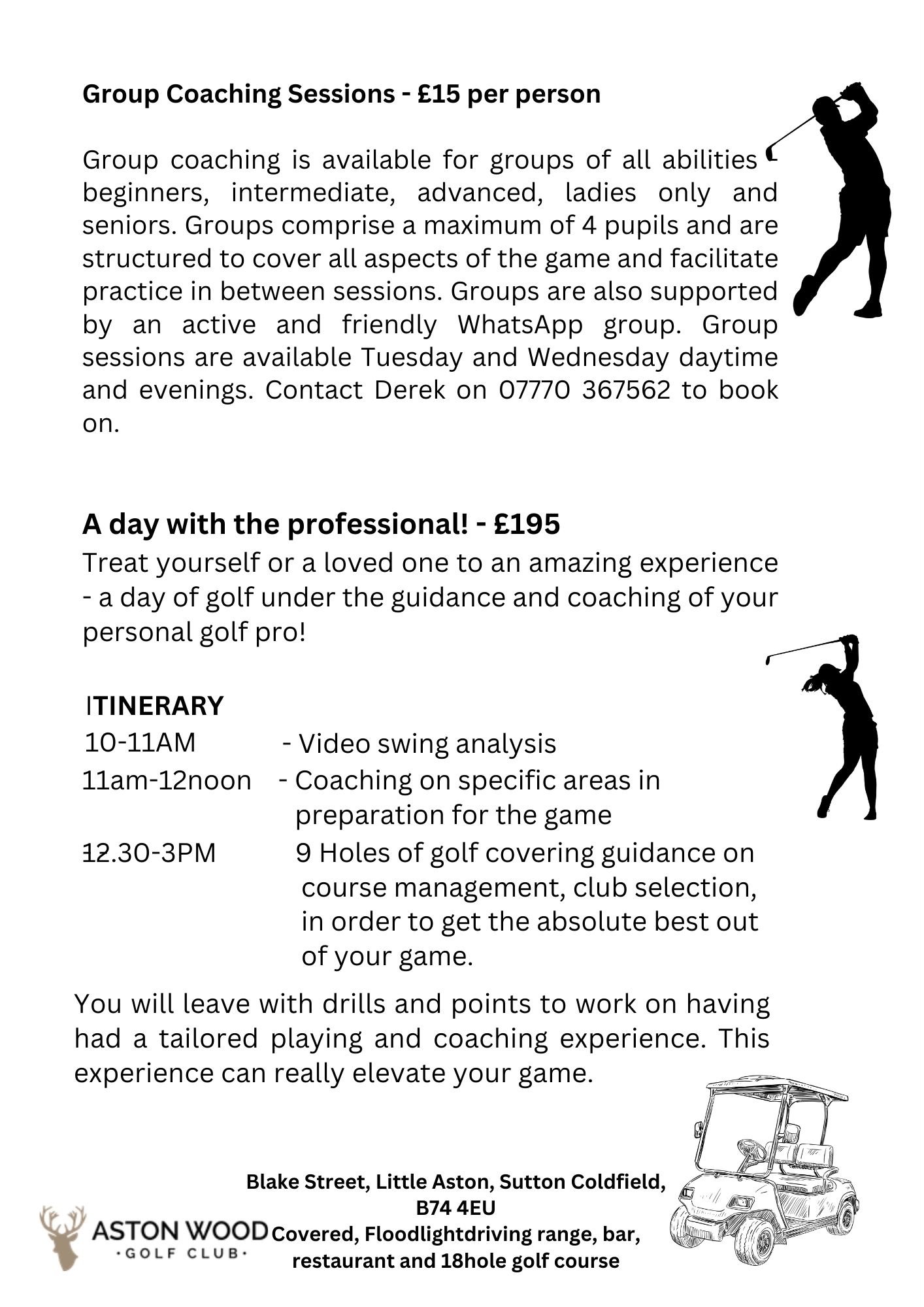 Give me a call to discuss your needs, tuition is tailored to your playing ability, development level, aims and timescale. I aim to create a great supportive structure for your game and to help you get the best out of your coaching programme.